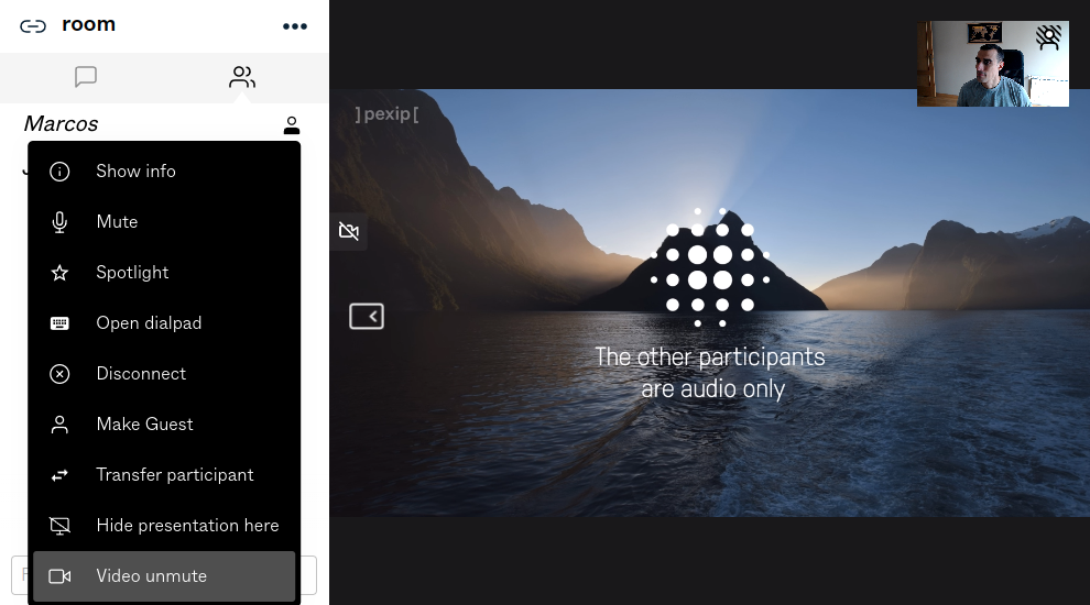 The Video Mute Participant is used by the host of the meeting to disable the video of another participant. This is useful in case some guest forget that he has the video enabled.